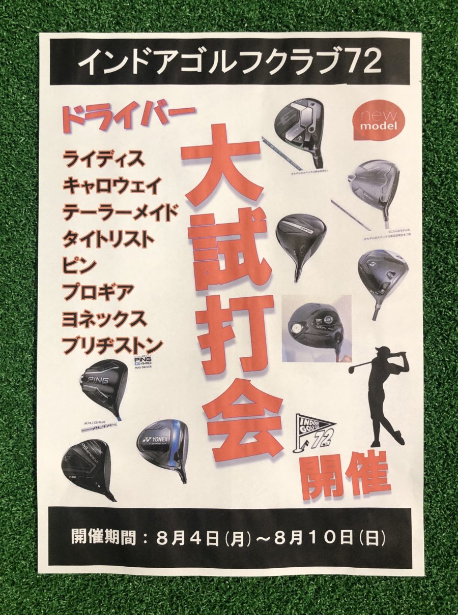 8/4(月)〜8/10(日)までインドアゴルフクラブ72にてドライバー試打会やります🏌️‍♀️🏌️‍♂️✨