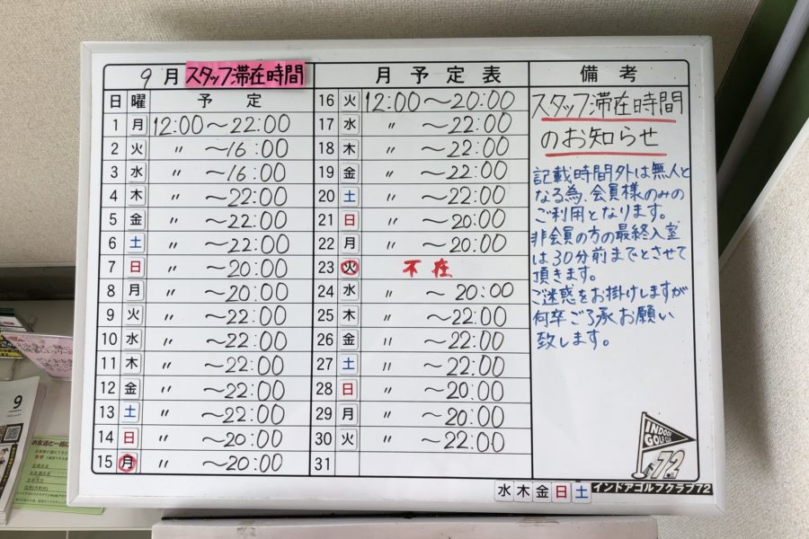 9月のスケジュール⛳